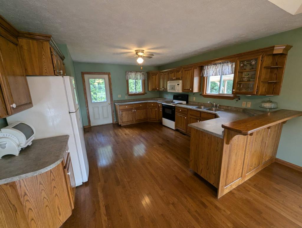 Enjoy the beautiful landscape in this spacious 3-bedroom, 2-bath home, featuring a large kitchen perfect for cooking and entertaining, a bright and inviting sun porch, and a wrap-around deck ideal for relaxing and taking in the surroundings.