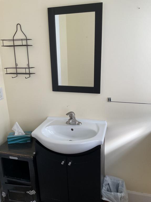 The primary bedroom is a reasonable size and can fit up to a queen size bed. There is also a patio area that can fit a small BBQ and could possibly fit small patio furniture. The bathroom brings in lots of natural light, and offers a shower stall, and is laid out reasonably well.